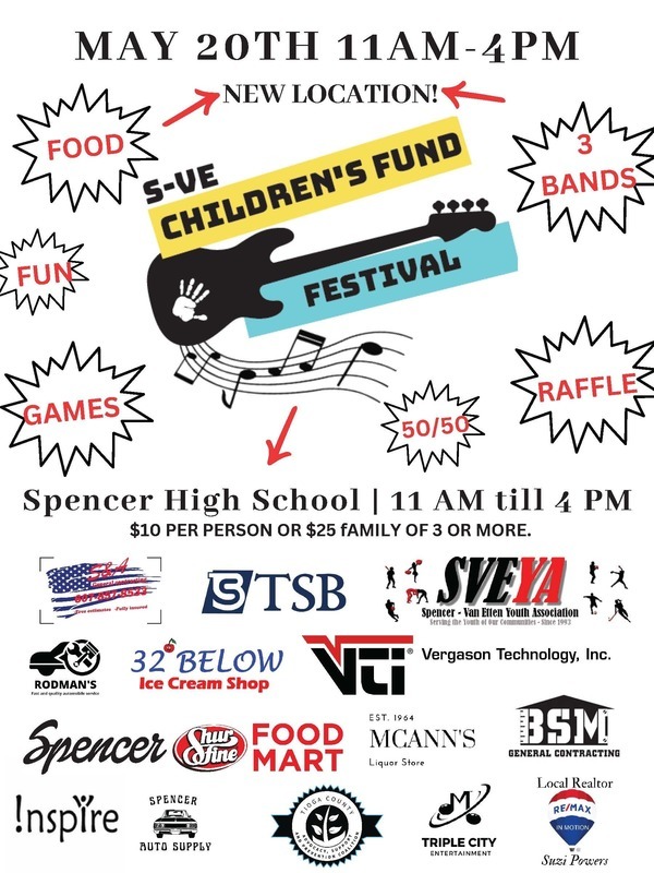 NEW LOCATION! SVE-Children's Fund Festival will. be held at Spencer-Van Etten High School.