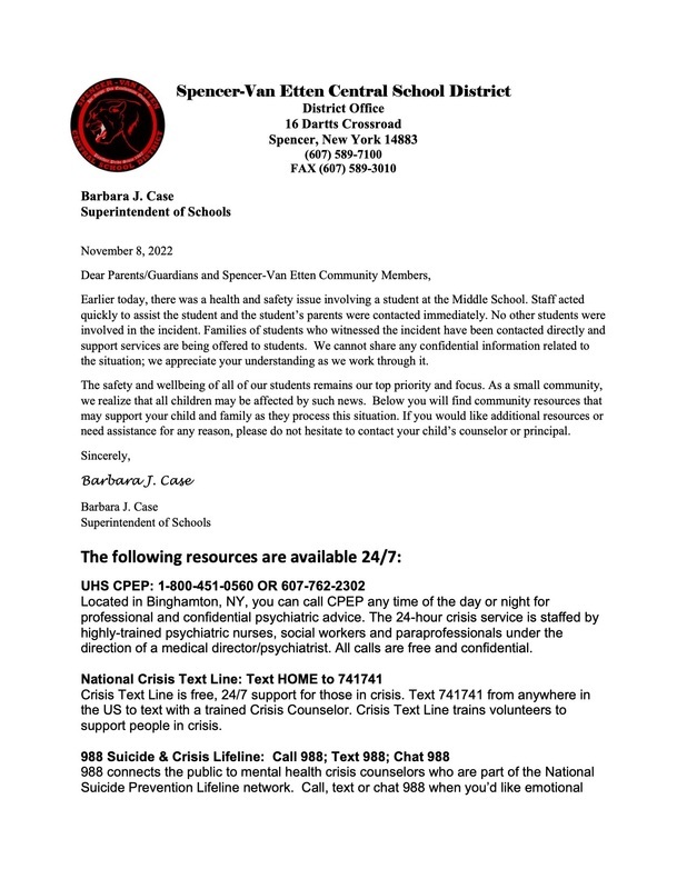 Click here to view letter from the superintendent